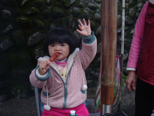 吃完了主餐,還有留肚子給小吃攤們,這家草莓香腸的小妹妹非常不怕鏡頭呢!超可愛